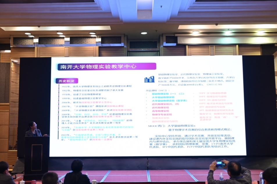 在邀请报告阶段,苏卫锋教授着重介绍了基础物理实验学习目标的设置、EMA原则、分解与落实以及教学内容设计等四方面的工作;王槿教授围绕基础物理实验教学中学生能力培养、基础实验课与教学改革项目、国际物理奥林匹克竞赛等方面进行了分享;孙尚倩教授分别从实验室管理、创新创业工作以及公共服务等方面展示了如何“以人为本”构建实践教学体系、推进实践教学改革。
