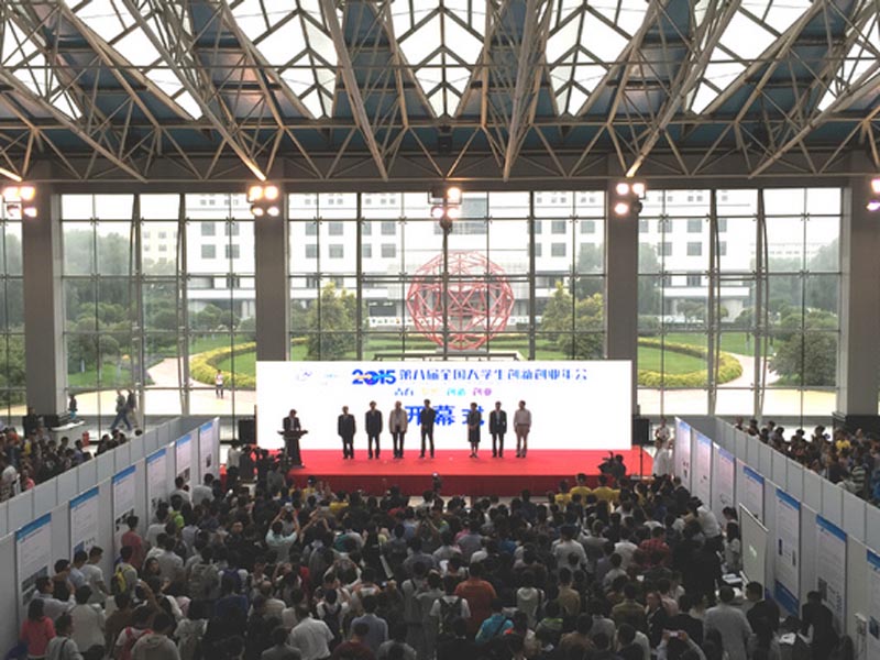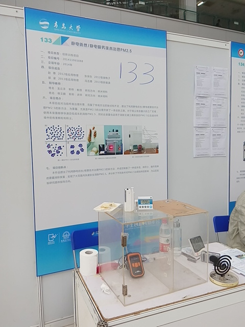 有1个项目入围参展。物理学院赵惠、张保生、郭家、冯吉勇4位同学在龙云泽、韩文鹏老师指导下完成的创新创业展示项目“静电纺丝/静电喷雾技术治理PM2.5”成功在大会上进行了展示,受到了与会专家、师生和媒体记者的广泛关注。据悉,该项目的研究成果曾荣获山东省第七届大学生物理科技创新大赛一等奖。