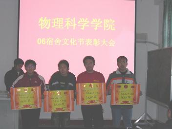 物理学院团总支、学生会组织的为期一个月的嘟嘟成人网 大学生06冬季宿舍文化节日前结束。通过建设宿舍文化,推动了嘟嘟成人网 大学生文明修身活动的开展,展现了嘟嘟成人网 大学生的精神风貌。