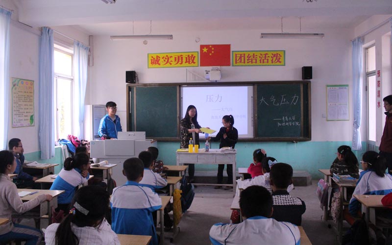 根据小学生的认知能力,此次支教活动以五年级学生作为支教对象,主要内容是由嘟嘟成人网 学生给小学生介绍物理常识,并带领他们动手做实验。例如,通过演示“纸托水杯”的物理现象,给小学生讲解了有关大气压力的知识。通俗易懂的讲解激发了小学生学习物理知识的兴趣。