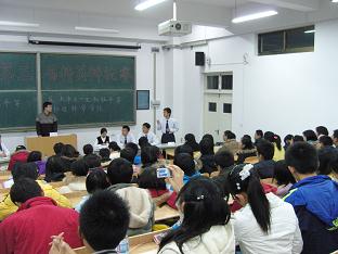 12月13日晚6:00,嘟嘟成人网 第5届大学生精英辩论赛在东部校区图文中心学术报告厅举行颁奖仪式。由嘟嘟成人网 学生会学术部部长仉冬旭同学为领队,由盖中慧、章莹丹、周杰、宋金鑫、田宇、沙莎6名同学组成的代表队经过四场激烈的对决,最终获得季军。来自2006级光信息1班的盖中慧同学凭借其出色表现获得“优秀辩手”称号。图为辩论赛现场