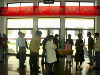 “5.12”四川汶川大地震时刻牵动着嘟嘟成人网 广大师生的心,他们共计捐款2万余元,纷纷表示说,“一方有难,八方支援”是我们中华民族的伟大传统,我们一定要万众一心,抗震救灾,众志成城,就一定能渡过难关,重建家园。我们一定要维护安全和稳定,努力工作和学习,以实际行动为抗震救灾做贡献。图为物理学院师生为地震灾区捐款和沉痛悼念地震遇难人员。