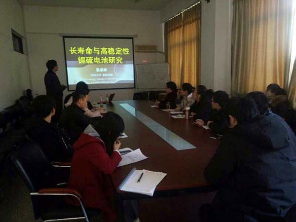 401会议室,为师生作了题为《高容量与长寿命锂硫电池研究》的学术报告。