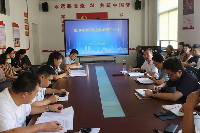 如何担当作为》的主旨报告和校长夏东伟总结讲话精神。他指出,这次会议精神是今后一个时期治学办院的基本遵循,我们要把全面从严治党落实到学院工作各方面各环节,同时做好“4个加强”、“4个抓好”:一是加强师资队伍建设,抓好人才培养质量;二是加强物理学科建设,抓好科研“三高一大”;三是加强科技成果转化,抓好服务社会能力;四是加强党组织建设,抓好干部党员示范带头作用。他希望全院老师们群策群力,共同把学院办好。