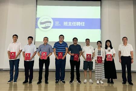 学院党委书记郝伟为2024级新生班主任颁发聘书;教师代表、山东省教学名师云茂金以自己的求学与教学经验为切入点,围绕“大学”、“专业”和“规划”三个关键词,勉励新生:理想的实现,需要脚踏实地,需要不断学习、思考、实践与感悟。老生代表张光瑞从“物理人”、“青大人”、“青年人”三种角色分享了自己在物院的学习体会;新生代表胡高源表达了对大学生活的期待,接下来会以新行动、新风貌去适应新环境,开启精彩的物理之旅。