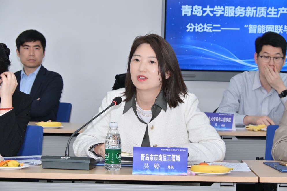 党委常委、副校长何燕教授出席论坛并致辞。她表示,学校始终坚持面向国家战略需求和区域产业发展需要,持续强化有组织科研和交叉融合创新,推动教育链、人才链、创新链、产业链深度融合。围绕“智能网联与未来能源”方向,学校将进一步发挥学科和平台优势,深化产学研协同创新,加快科技成果转化,为青岛市新质生产力发展贡献青大力量。