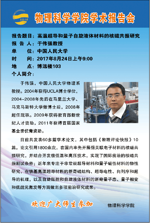 2017物理前沿学术报告第十六讲:高温超导和量子自旋液体材料的核磁共振研究