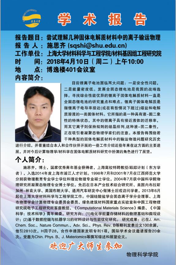 2018物理前沿学术报告第七讲:尝试理解几种固体电解质材料中的离子输运物理
