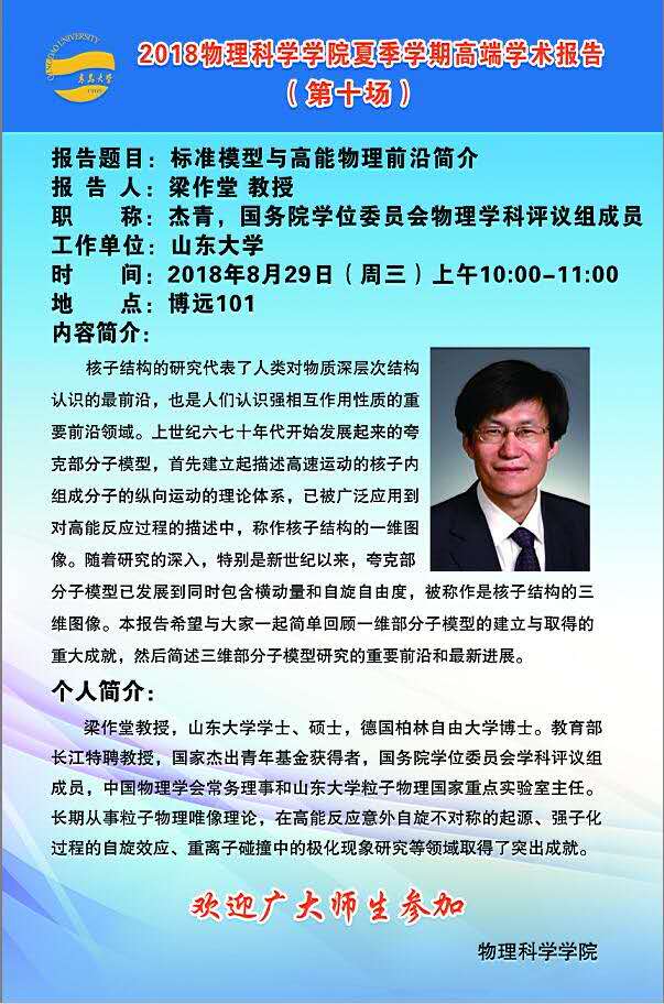 2018物理前沿学术报告第三十讲:标准模型与高能物理前沿简介