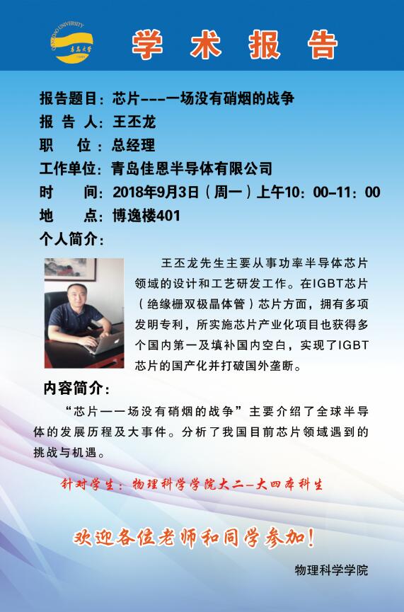 2018物理前沿学术报告第三十五讲:芯片:一场没有硝烟的战争