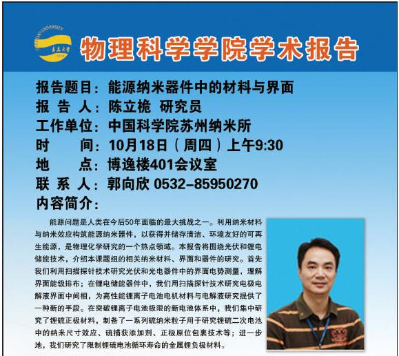 2018物理前沿学术报告第四十讲:能源纳米器件中的材料与界面