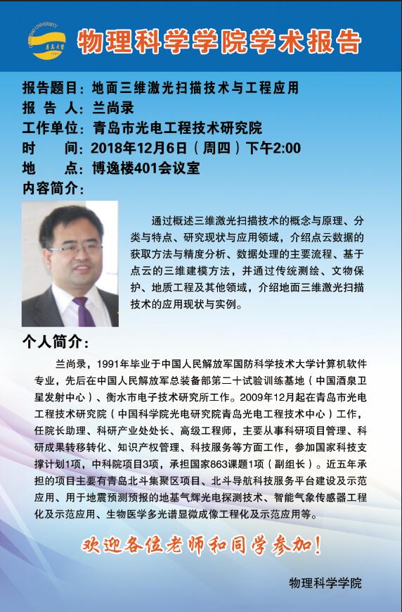 2018物理前沿学术报告第四十八讲:地面三维激光扫描技术与工程应用