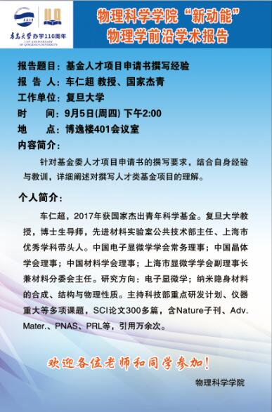 “新动能”物理学前沿学术报告19:基金人才项目申请书撰写经验