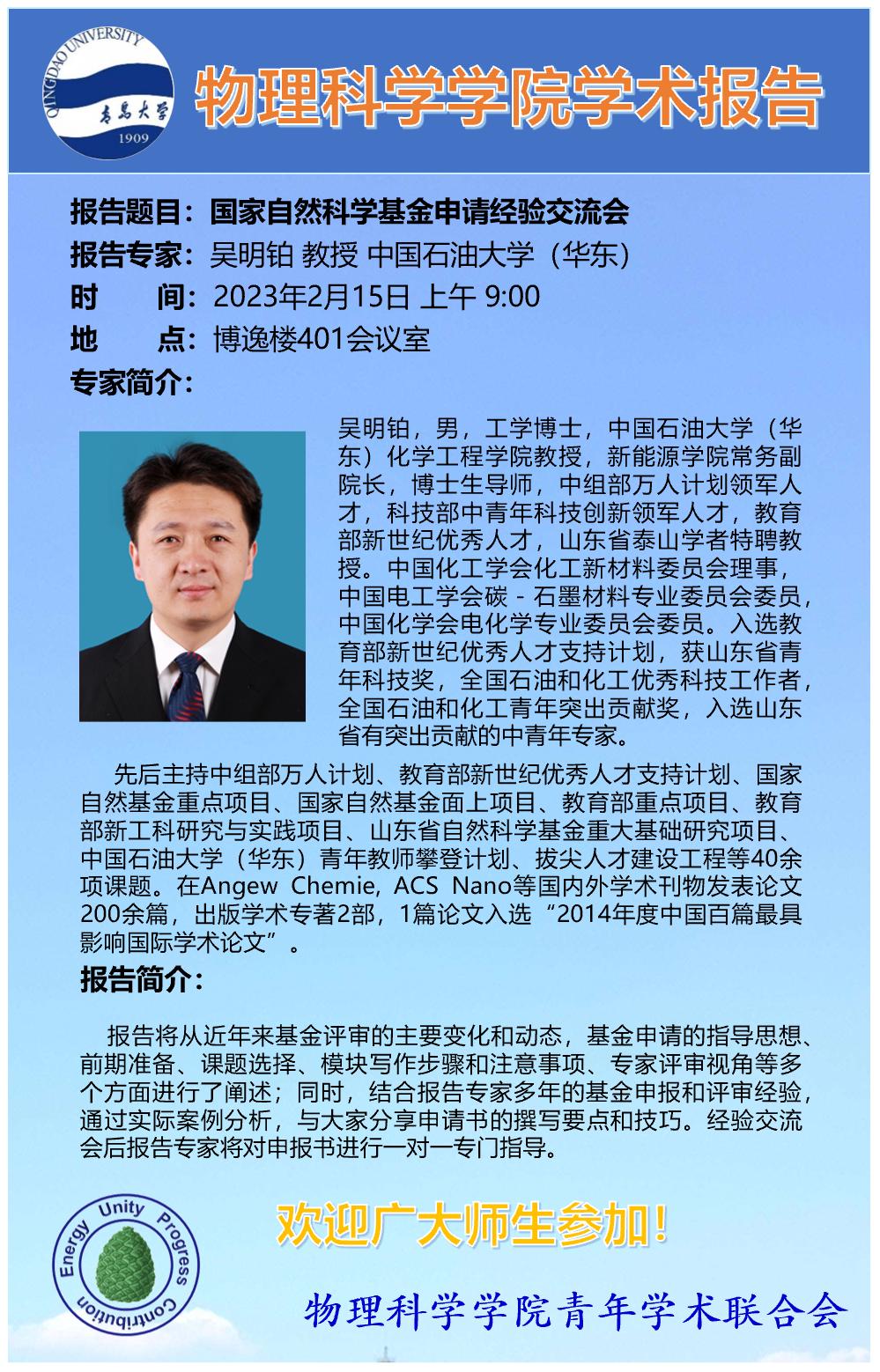 [学术活动]吴明铂-国家自然科学基金申请经验交流会