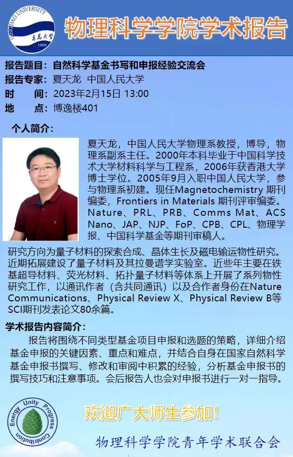 [学术活动]夏天龙-国家自然科学基金书写和申报经验交流会