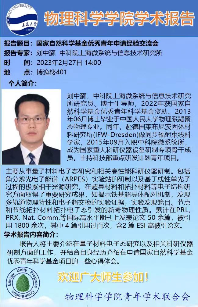 [学术活动]刘中灏-国家自然科学基金优秀青年基金经验交流