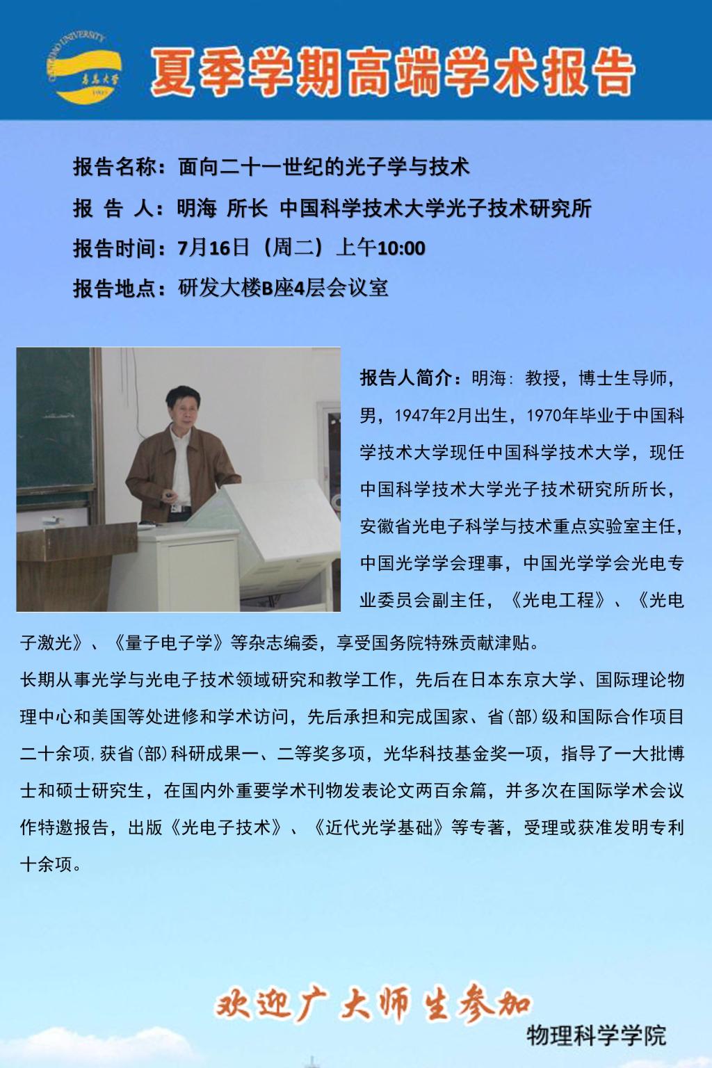 [学术预告]明海-面向二十一世纪的光子学与技术