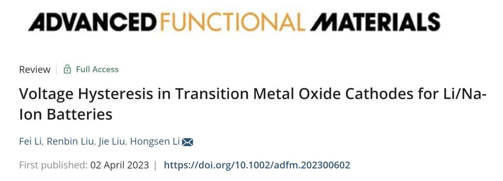 教师在国际顶级期刊《Advanced Functional Materials》发表了题为“Voltage Hysteresis in Transition Metal Oxide Cathodes for Li/Na-Ion Batteries”的综述论文(Adv. Funct. Mater. 2023, 2300602)。嘟嘟成人网