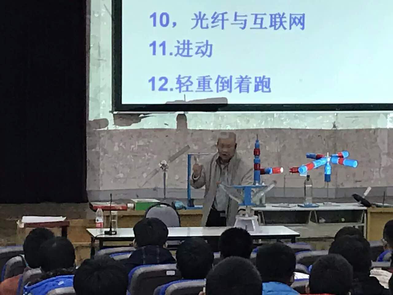 报告会上,陈教授使用自己制作的科普表演仪器,现场演示了光线与互联网等十几种有趣的科普实验,让学生回答现象产生的原因,解释所蕴含的物理定律和原理。现场气氛热烈,2016级新生踊跃发言。他随后还演示了生活小发明和小窍门,呼吁大家节约能源,保护地球。陈教授寄语新生要仔细观察和独立思考,综合分析,学会用科学思想和方法解决实际问题,自觉抵制伪科学和愚昧迷信。