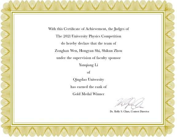 国际大学生物理竞赛是一项面对全球本科生的国际性学科竞赛,由美国物理学会和美国天文学会赞助。每年竞赛设置两道贴近具体问题的题目,要求以不多于三名学生组成团队,选择其中一道题目作答,并在48小时内提交一份英文研究报告。比赛要求参赛者利用基础物理原理来分析实际场景并做物理建模。通过模拟计算,给出具体解决方案。题目设置具有极强的开放性。能很好地考察学生的创新能力、学术思维、团队合作能力和英文写作水平,对参赛者的综合素质要求较高。赛事设置金奖(1.9%),银奖(19%),铜奖(26%)以及完成奖(52%)。