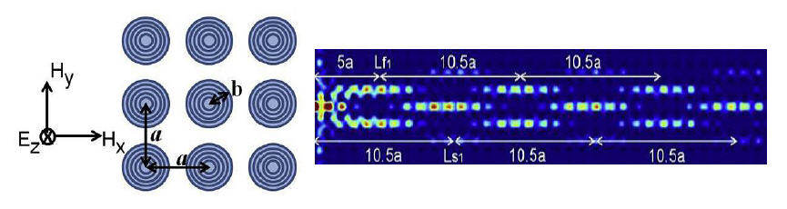 多壁碳纳米管在波长量级上的周期性阵列排布构成了一种基于多壁碳纳米管的新型光子晶体,该工作通过研究该光子晶体的色散关系,得到了不同激发模式下的传播常数,实现了由多模干涉引起的自成像现象,并且研究了多模波导中的成像位置、泰伯距离与碳纳米管管径的关系。该研究推动了碳纳米管在光学成像中的应用。