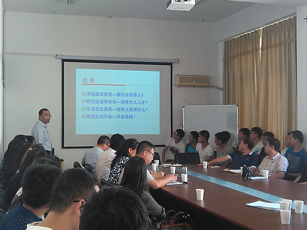 典礼结束后,接着进行了研究生入学教育。副院长滕冰从学院的学科方向、师资力量、研究生的培养目标、课程要求、论文毕业要求、学位论文等方面工作作了详尽介绍,同时对学院研究生管理等工作作了说明。