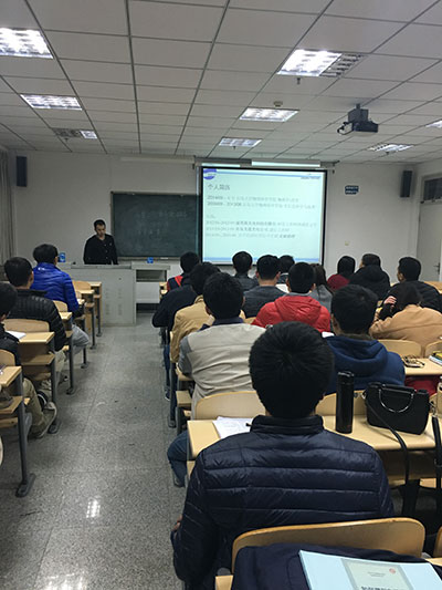 2014级研究生秦熙恒在浩园307教室为2016级57名研究生作了题为“微环谐振器在光通信滤波中的应用研究”的学术报告,报告会由副院长滕冰主持。
