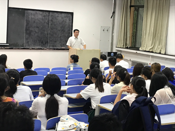 在博学楼101教室举行2019级研究生迎新暨导师见面会。院党委书记李升学、院长滕冰、党委副书记郝伟、副院长王乙潜出席见面会。优秀研究生导师代表云茂金教授、优秀学生代表杨婧男、2019级全体研究生及相关学生工作人员参加了会议。会议由王乙潜副院长主持。