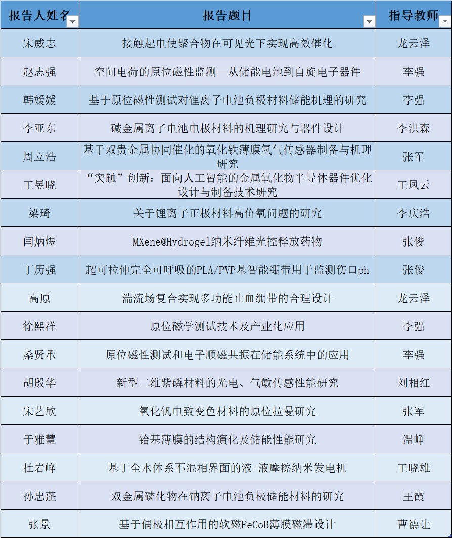 共有18位研究生参加了口头报告,17位同学参加了张贴报告。