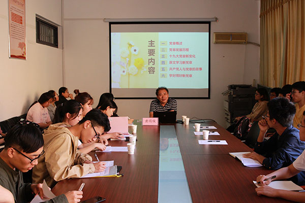 党委书记黄国俊以《中国共产党章程》为题从党章概述、党章发展历程、十九大党章新变化、原文学习新党章、共产党人与党章的故事、学好用好新党章、结语等七个方面为入党积极分子讲了第一课。通过该课程的学习,入党积极分子对党章的发展历程、十九大新党章的特点亮点和主要内容将有一个清晰的了解,对切实遵守党章、贯彻党章和维护党章将具有重要的意义。