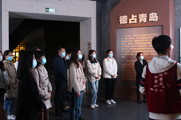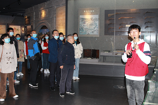 学习参观由学院学生党支部“红色基因”思想教育实践团成员全程负责讲解。“红色基因”思想教育实践团隶属学院学生党支部,由学生党员、发展对象、入党积极分子等组成。2019年10月学生党支部与青岛一战遗址博物馆及青岛山炮台遗址成立合作共建平台。实践团成立近两年来,形成完善的管理运行机制,志愿服务人数150余人,累计服务时长512工时,其中博物馆总时数245工时,炮台157工时,场馆维护26工时,检票86工时,为博物馆近千人提供讲解服务,得到博物馆一致认可与好评。同学们通过志愿服务更深入地了解青岛这座城市的历史,更好地体悟党员理论,党的发展历程,真正地参与到宣传教育当中来,化身一战讲解员,做好自身传承的同时弘扬红色基因。