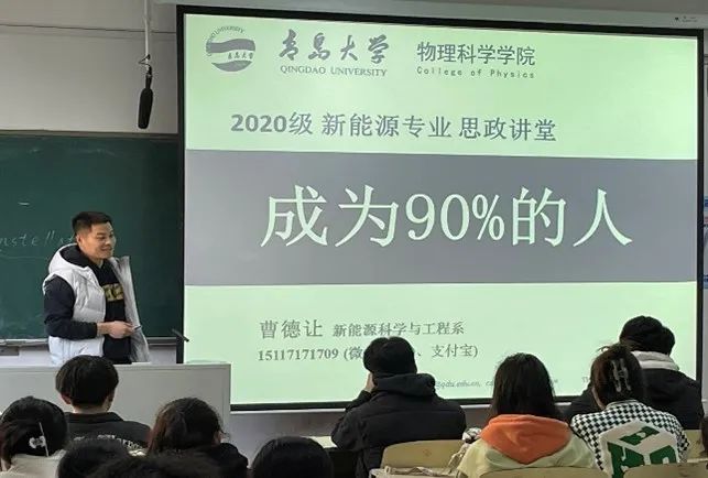 新能源科学与工程系党支部书记曹德让以“成为90%的人”为主题向同学们作报告,指出一个人如果想成功,努力和选择同样重要。他说,我们生活在数据时代,日常中的一个经历、发生在我们身边的一件事都会潜移默化地成为我们的数据。通过数据的积累,我们会对未来做出正确的判断与规划,从而让自己的人生步入正确的轨道。作为大三年级的学生,想成为有理想的人,就要合理规划自己的发展,认真思考自己的未来。他鼓励大家即刻行动准备考研,埋头苦干,一定会苦尽甘来。