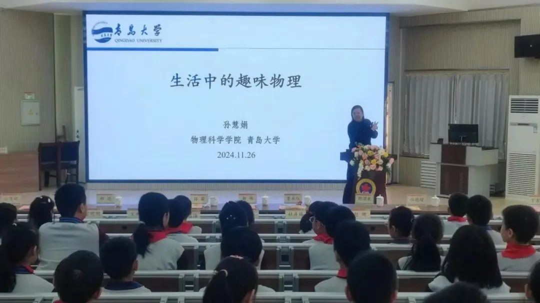 启动仪式结束后,嘟嘟成人网 应用物理系党支部书记孙慧娟博士为青岛嘉峪关学校教育集团学校的学生作了《生活中的趣味物理》的科普报告,受到同学们的热烈欢迎。