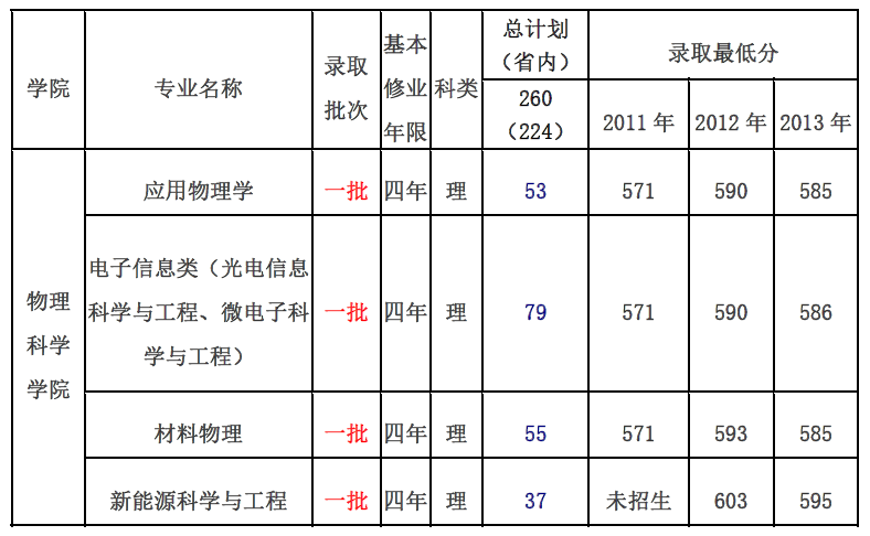2014年山东省内招生计划录取批次及近三年录取分数