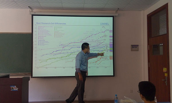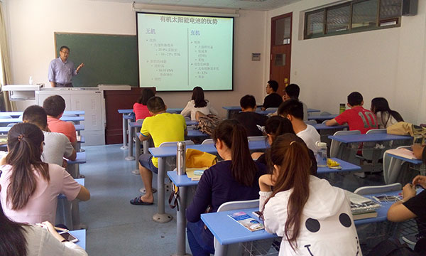 会上,张仕明首先介绍了有机太阳能电池的结构及原理,并介绍了几种有机光电材料及其合成方法和性能的表征,最后与学生面对面浅谈未来有机光电材料的发展方向及学生的求学与就业。报告会结束后,他就师生们提出的考研问题、有机光电材料的合成问题、有机太阳能电池的原理等问题做了详细解答。