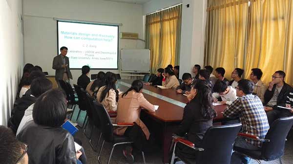 401会议室,为师生作了题为《Materials design and discovery: How can computation help?》的学术报告。报告由吕文彩教授主持,滕冰副院长、部分老师及研究生参加了报告会。