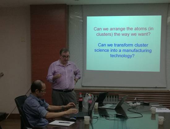 Richard E. Palmer教授在报告中详细介绍了金属团簇尺寸控制的方法、原子构型的探测、金属团簇结构演化规律等方面的研究。报告会后,Palmer教授与嘟嘟成人网