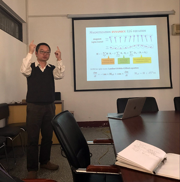 在博逸楼401会议室作了题为《Non-von Neumann Spin Wave Computing: A Theoretical Scheme》的学术报告。报告会由李山东教授主持。学院教师和研究生30余人聆听了报告。