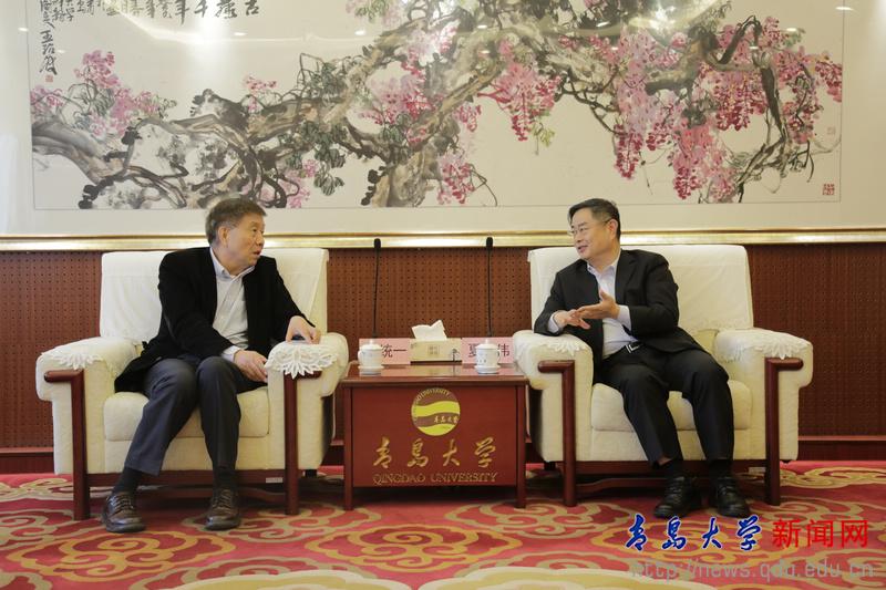和科研平台、人才建设和人才培养、学校发展和地方支持、服务地方和校地合作以及胶州新校区建设等方面介绍了学校改革发展基本情况和坚持立足青岛、融入青岛、服务青岛所取得的成效。夏东伟与张统一院士还就人工智能发展和应用、地方产业发展带来的机遇和挑战、服务地方的切入点和立足点以及有关兄弟院校的发展模式和经验进行了交流。