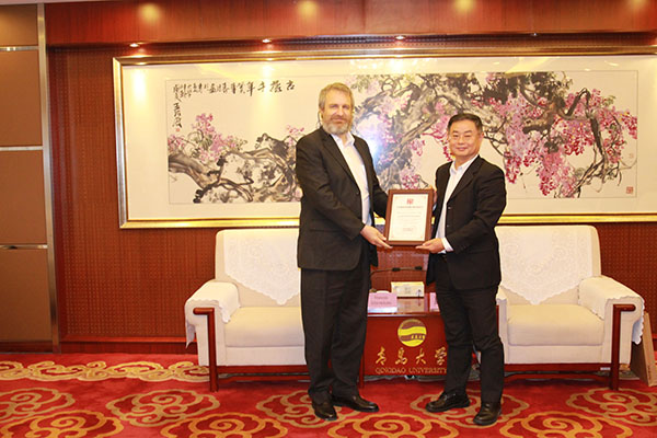 近日,加拿大蒙特利尔大学物理系Francois Schiettekatte教授荣获山东省政府特聘外国专家称号。11月 19日,校长夏东伟在办公楼204接待室会见了Schiettekatte教授,并为其颁发了荣誉证书。