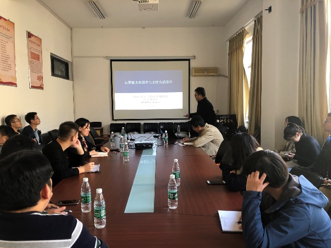 为师生作了题为《石墨烯光电器件与柔性传感器件》的学术报告。报告由张军教授主持。