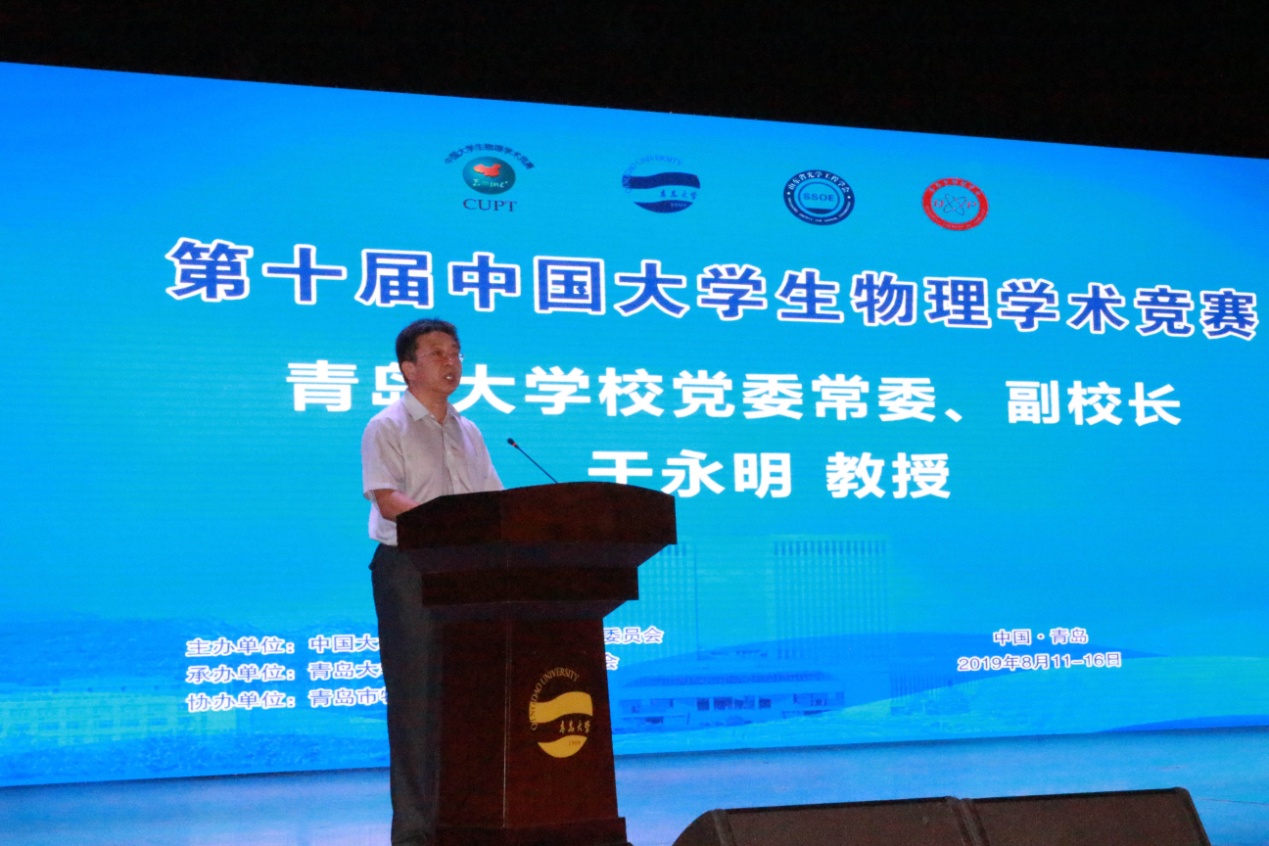 校党委常委,副校长孔伟金教授对本届CUPT作了总结讲话,他对参赛队员间相互交流物理知识的认可以及对志愿者工作的感谢。同时,他回顾了本届大赛举办过程中的点点滴滴,尤其是台风“利奇马”对本届大赛的影响,更是引起大家的共鸣。