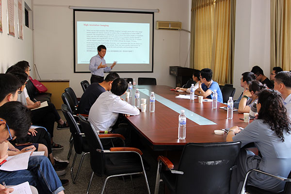 相关方向的教师及青岛众瑞智能仪器有限公司总经理何春雷就横向课题的国际合作展开了深度探讨,并为师生作了题为《从纳米分析到单原子成像-高分辨透射电子显微镜》的学术报告。报告会由学院院长滕冰主持。