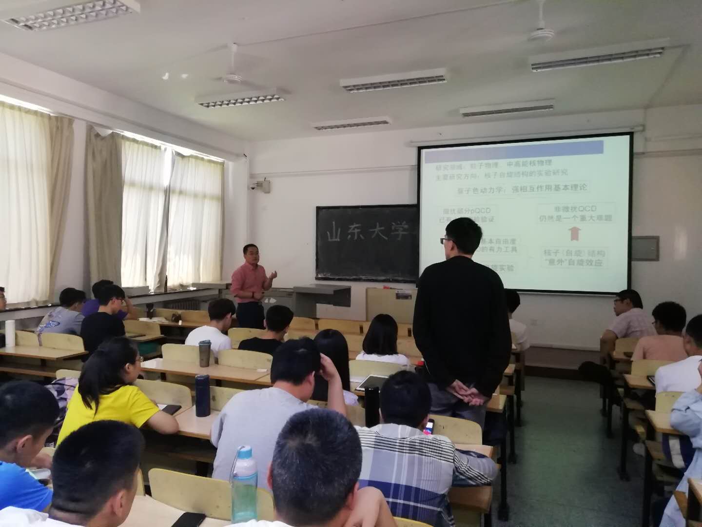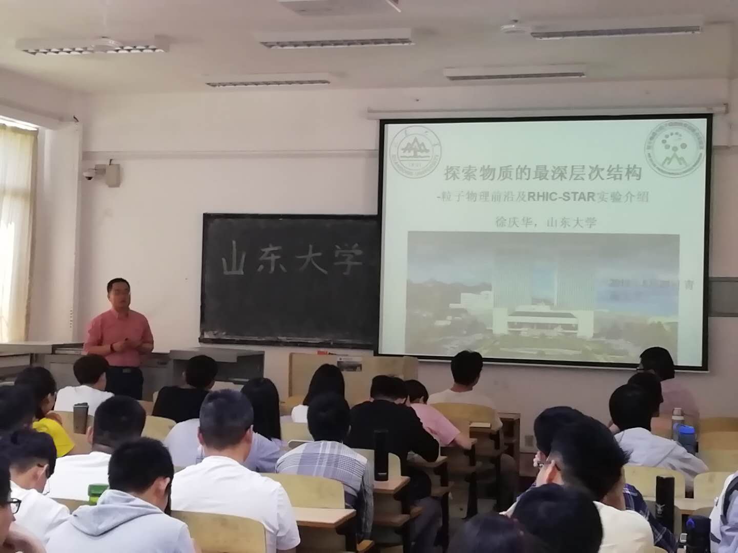 校友、山东大学前沿交叉科学青岛研究院教授、博士生导师,首届国家优秀青年基金获得者徐庆华应邀在博学楼304教室为学生作了题为《探索物质的最深层次结构》的学术报告暨考研宣讲。学院相关研究方向的师生和有志考研从事粒子物理研究的学生参加了报告会。