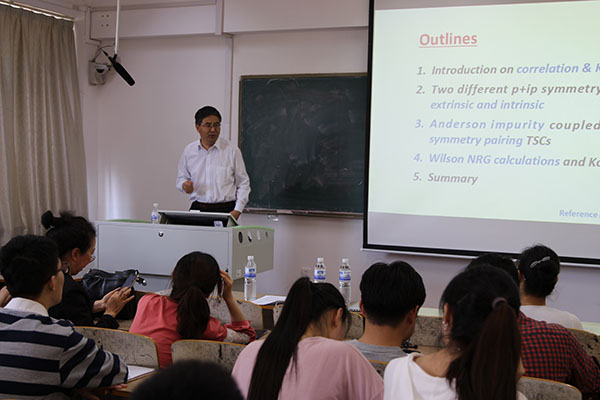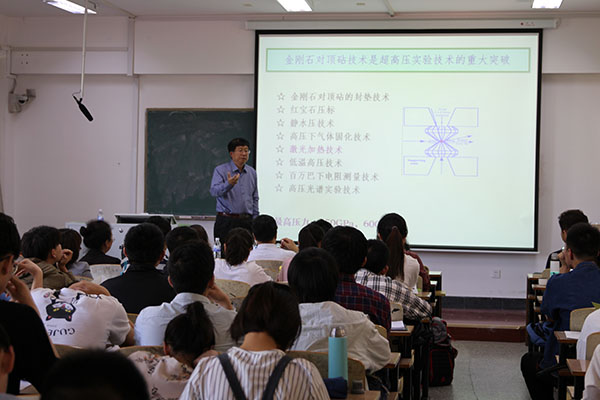 为师生分别作了题为《神奇的高压世界》《Kondo Signatures of a Quantum Magnetic Impurity in Topological Superconductors》的学术报告。报告会由学院院长滕冰主持,相关专业教师和学生120余人参加了报告会。