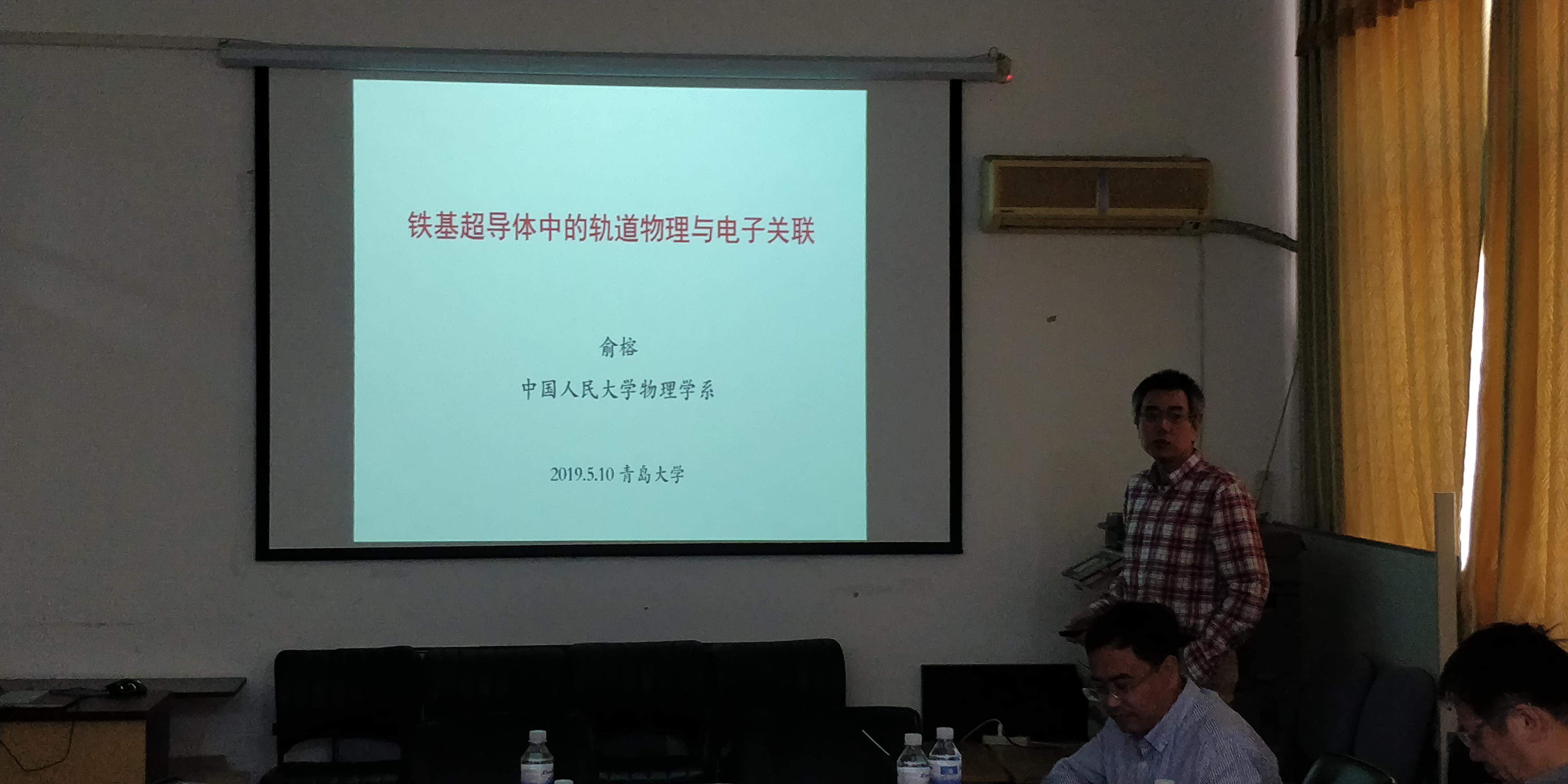 会上,于伟强教授简要介绍了中国人民大学物理系的发展情况、主要团队、实验计算设备以及研究成果等。齐燃副教授作了《超冷原子气体中的新奇量子现象》学术报告,并介绍了人大的原子与分子物理研究团队。王善才教授作了《极大磁阻材料的角分辨光电子谱研究》报告,并介绍了自然角分辨光电子谱研究团队、研究成果以及学生培养情况。夏天龙副教授作了《拓扑材料的单晶制备与磁输运物性研究》报告,并介绍了自己的实验设备、研究成果以及学生培养情况。俞榕教授作了《铁基超导体中的轨道物理与电子关联》报告,并介绍了自己的强关联电子系统的理论研究方向以及招生情况。于伟强教授作了《关联电子材料的凝聚态核磁共振研究》报告,并介绍了自己的核磁共振实验室研究团队、实验设备以及研究成果和学生培养情况。最后,人大物理系行政秘书赵建芝老师介绍了人大物理系的招生以及暑期学校的有关信息。