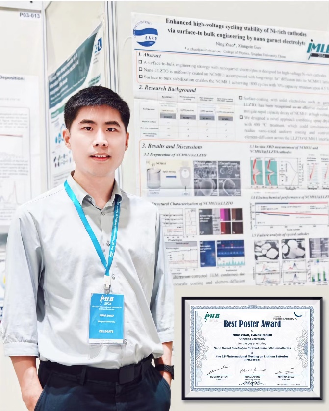 郭向欣固态电池团队成员赵宁博士的作品《Nano Garnet Electrolyte for Solid State Lithium Batteries》在800幅学术海报中脱颖而出,摘得“最佳海报”奖。