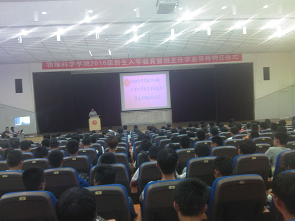 在松岭校区图文中心四楼会议室举行2016级新生入学教育大会暨班主任学业导师聘任仪式。院党委书记黄国俊、院长孔伟金等院领导,班主任学业导师以及有关老师出席大会,大会由副书记周志强主持。