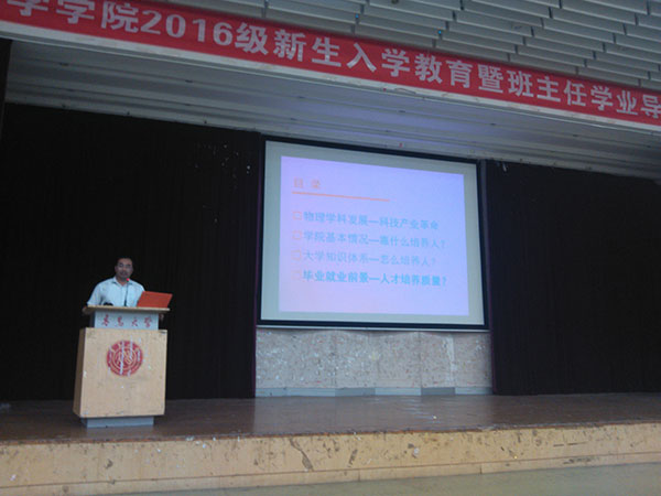 是一个团结战斗的集体,无论是教学科研还是学生工作,都取得了很大成绩,同学们加入这个大家庭,借助这个优秀的平台并通过不懈的努力,必将实现自己的远大理想和抱负。为此,他向同学们提出三点要求和希望:一、要树立正确的人生观、价值观和世界观;二、要做到身体健康和心理健康;第三、要严以律己、志存高远。黄国俊说,科学的大门即将向你们打开,而打开大门的钥匙就在你们手中,如何度过四年的大学时光,就靠你们如何定位、如何选择、如何思索、如何追求,科学殿堂攀登的高度由你们自己决定。最后,黄国俊衷心祝愿2016级的新同学们在嘟嘟成人网