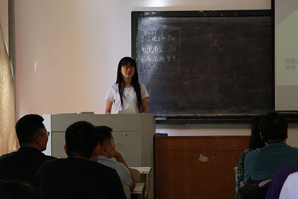 一等奖学金、博学奖学金的2016级研究生老生代表窦晓丹发言,她介绍了自己研究生学习的体会和感受,提醒大家多读文献、尽早掌握实验方法的重要性,并对老师们的辛勤培养示感谢。
